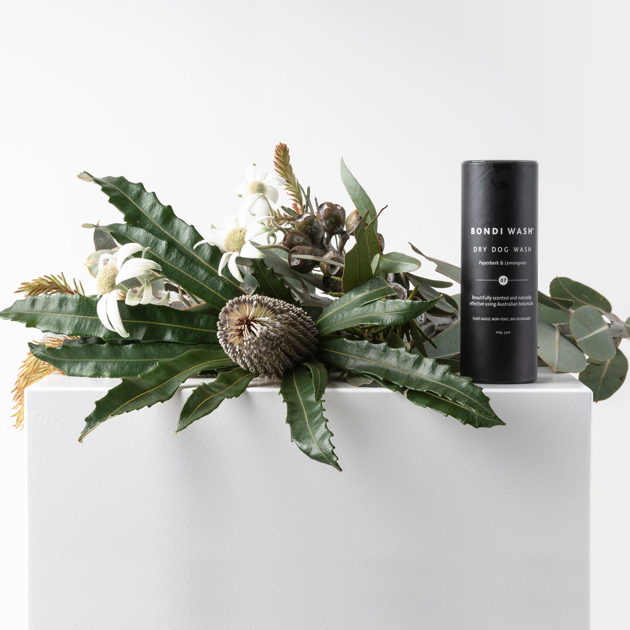 The Dry Dog Wash is a simple, convenient way to refresh your furry friend in between wet washes.The gentle, all-natural formulation in Paperbark & Lemongrass scent is specially designed for a dog's skin and system. Contains Australian banksia seed oil for a luxurious glossy coat.